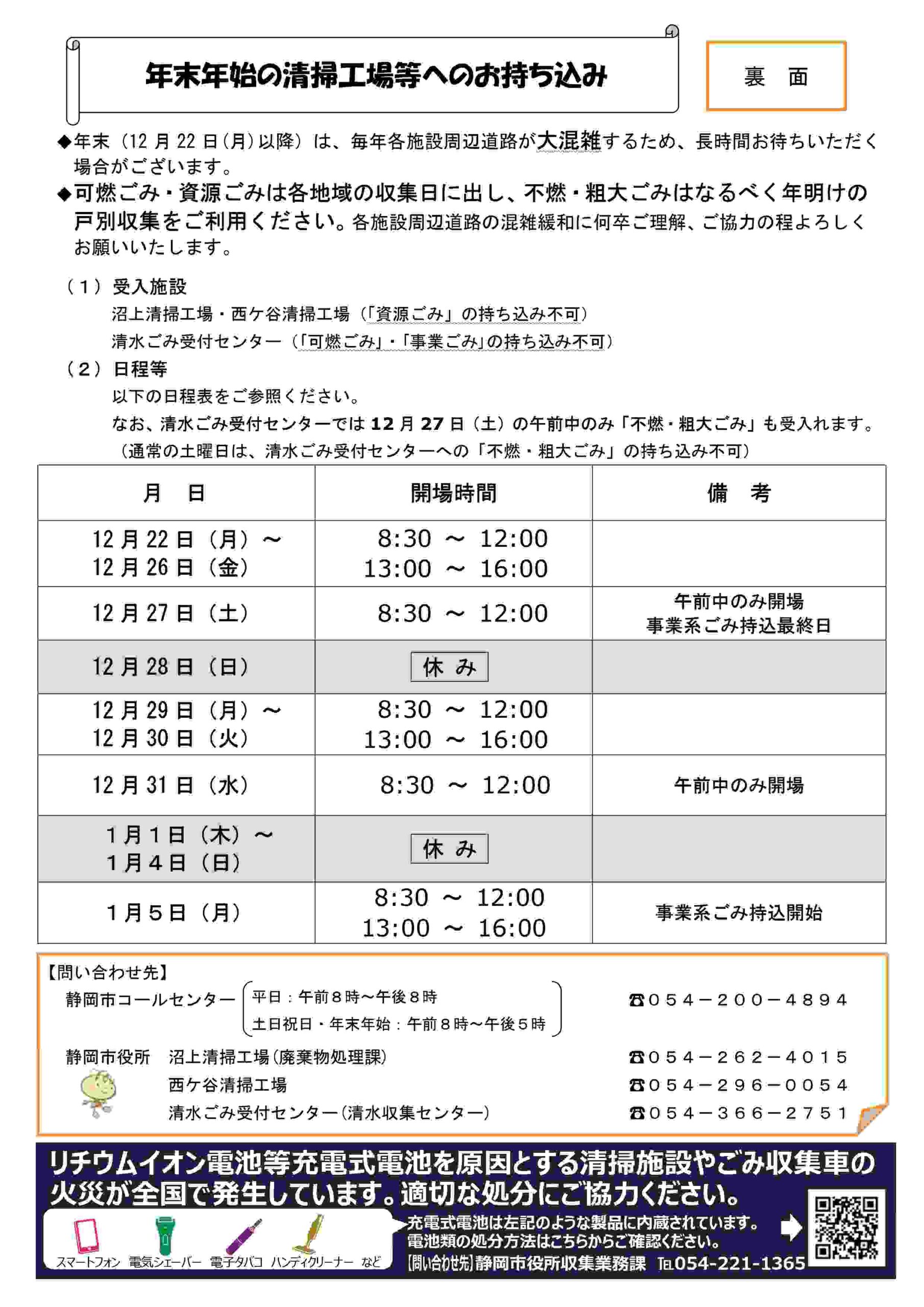 ・回覧:年末年始の清掃工場等へのお持ち込み(清水区)